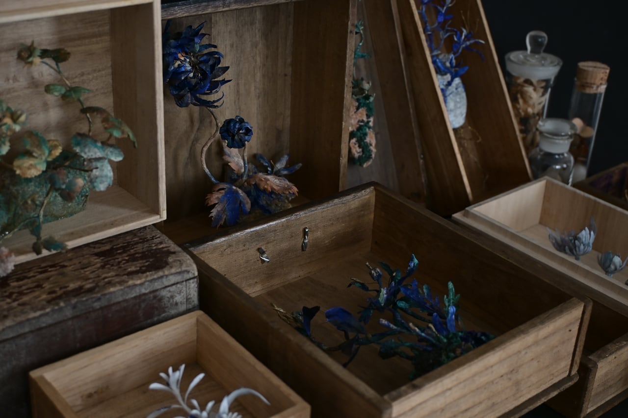 鉱石植物 アズロマラカイト(藍銅鉱・孔雀石) / 小引出し